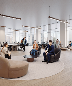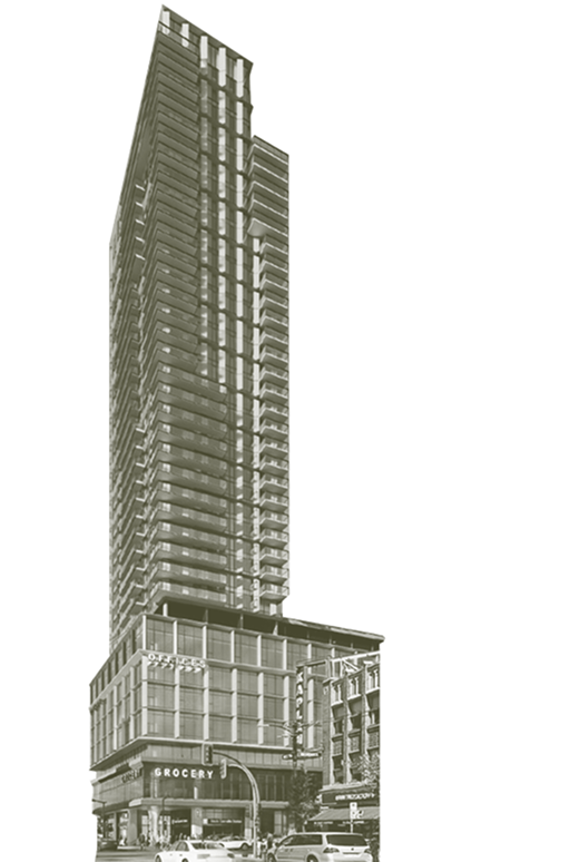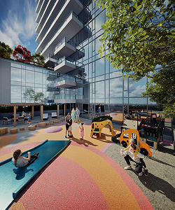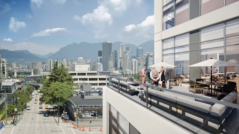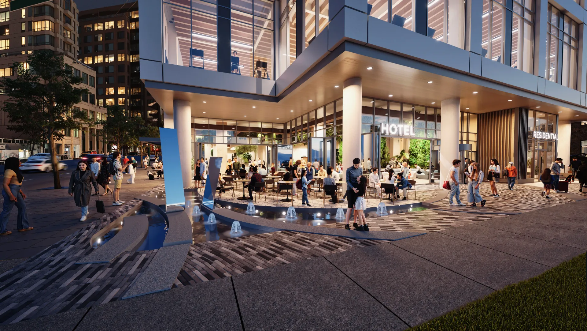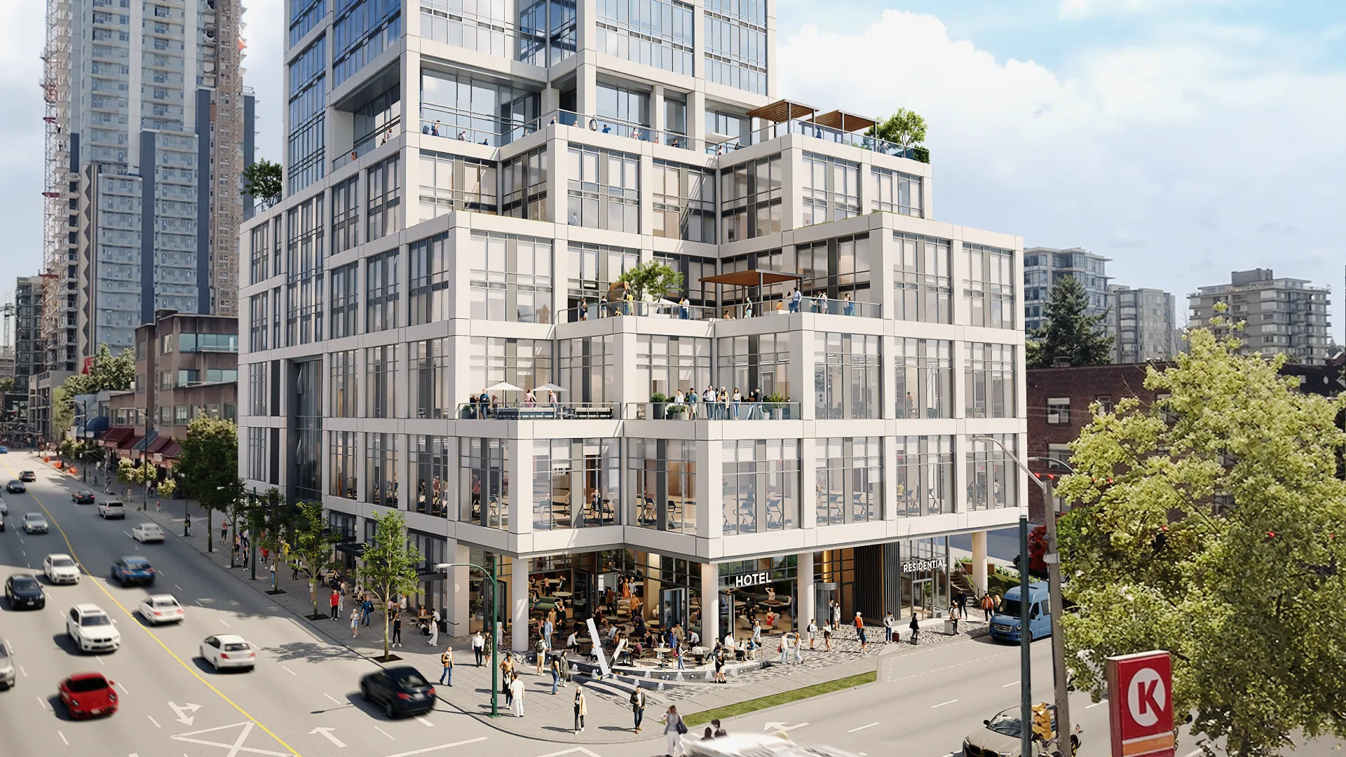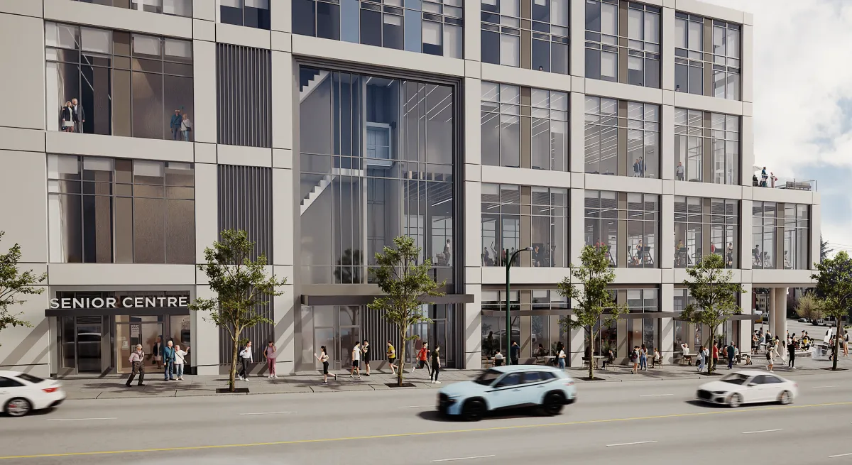Both projects incorporate generous building setbacks to intentionally create animated plazas to fulfill the Broadway Plan’s aspiration for a “complete, connected network of public spaces” that nurture social connection, cultural expression, and community well-being.