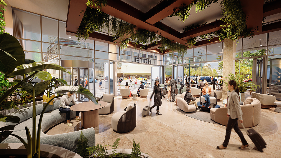 Artist’s rendering of the hotel lobby of the proposed Hemlock Project
